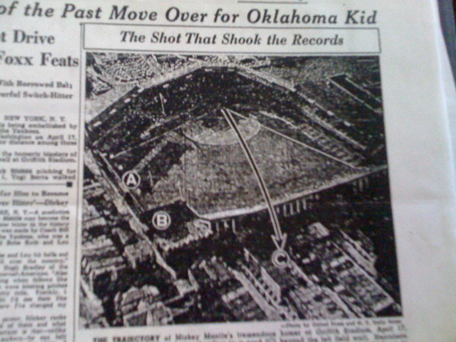 “Mantle’s 565-Foot Homer Clears Leftfield Stands,” The Post’s headline declared. A panoramic photograph with an arrow superimposed on the stadium traced the trajectory of the ball. Thus the “tape measure home run” was born.