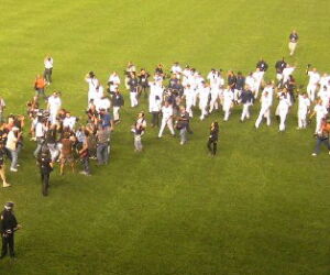 The camp was shut down when Commissioner Happy Chandler got wind of the big league instructors getting a head start on spring training. But Stengel had seen enough to see the future. "Mantle's at shortstop taking ground balls, throwing 'em by the first baseman—and outta the dugout comes Stengel," Workman remembered. "He's got a fungo bat in his hand, and he runs right at Mantle. He starts waving this bat at him, and he shoos him out into the outfield, and turns around and loudly announces to all the coaches and everybody that's assembled that this guy is gonna be a center fielder. 'I'm gonna teach him how to play center field myself, and I don't wanna see him at shortstop again.'"