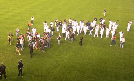 The camp was shut down when Commissioner Happy Chandler got wind of the big league instructors getting a head start on spring training. But Stengel had seen enough to see the future. "Mantle's at shortstop taking ground balls, throwing 'em by the first baseman—and outta the dugout comes Stengel," Workman remembered. "He's got a fungo bat in his hand, and he runs right at Mantle. He starts waving this bat at him, and he shoos him out into the outfield, and turns around and loudly announces to all the coaches and everybody that's assembled that this guy is gonna be a center fielder. 'I'm gonna teach him how to play center field myself, and I don't wanna see him at shortstop again.'"