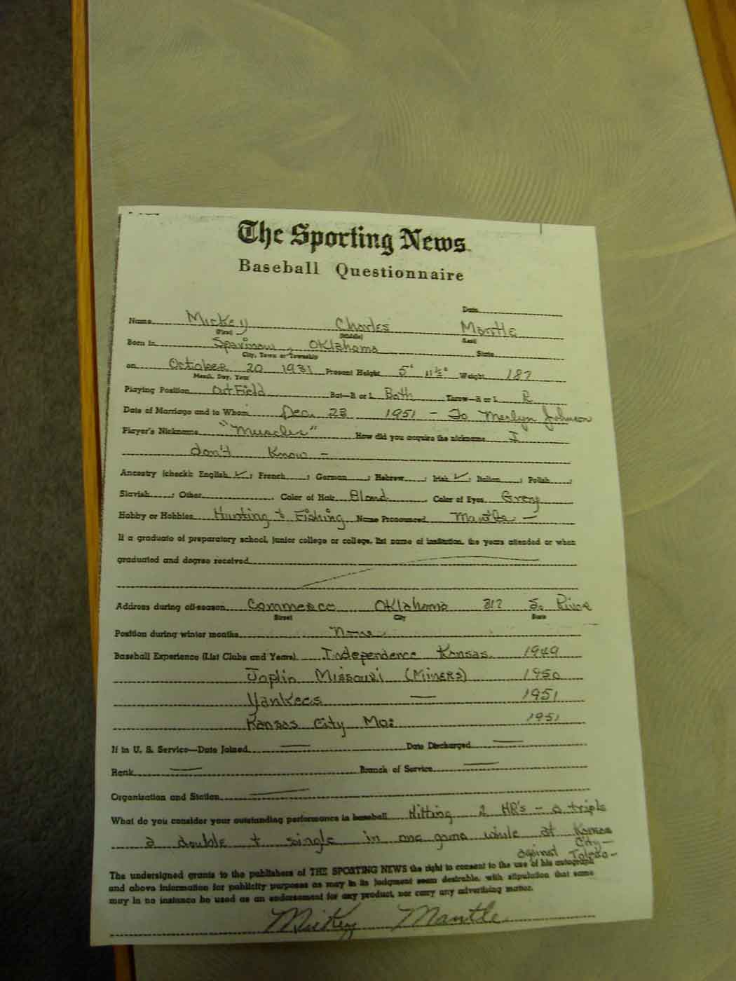 The groom to be was a no show when rookies reported to spring trainingcamp two weeks later. A reporter and photographer from the Miami Daily News-Record found Mantle at the Eagle-Picher motor pool anddelivered a message from Yankee farm director Lee MacPhail: "Where are you?" Helping out the pump crew, came the reply, for $33 a week.