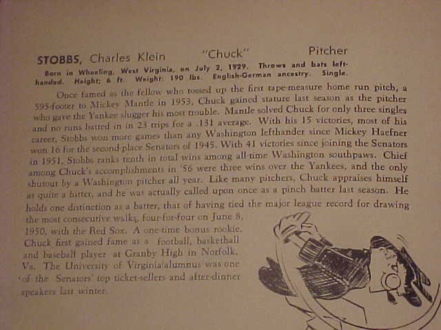 Bunny Mick, one of Stengel's lieutenants, timed him from the left-handed batter's box to first base in 3.1 seconds, a new land-speed record.Workman also recalled Mantle's debut in intrasquad games: "The first time Mantle came up, he hit one a mile outta that ballpark. About three innings later he comes up again. The pitcher's changed, and he hits one a mile out the other way. And all he does after is, he trots out to shortstop in his non-ostentatious way with his hat pulled way down."